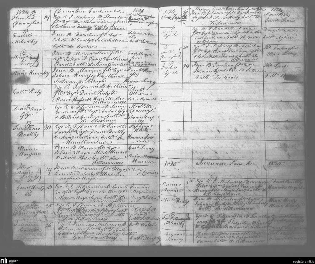 Killarney; County of Kerry; Diocese of Kerry. Baptisms, Dec. 1824 to Jan. 1825