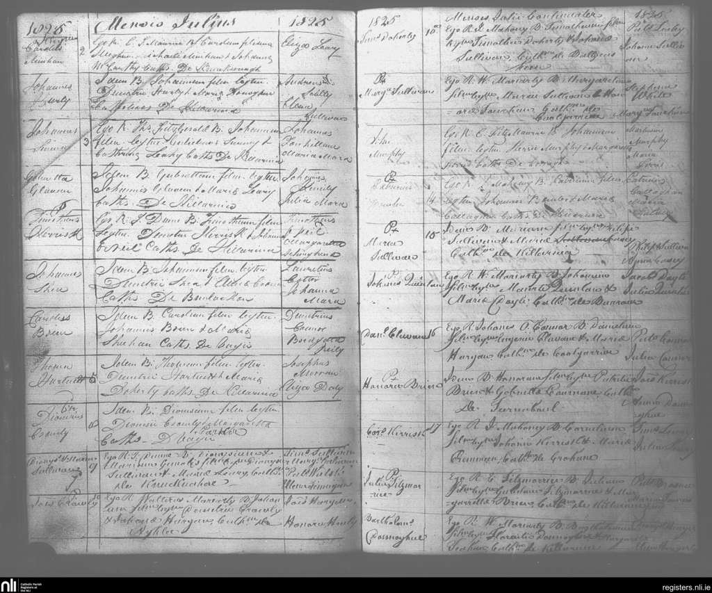 Killarney; County of Kerry; Diocese of Kerry. Baptisms, July 1825