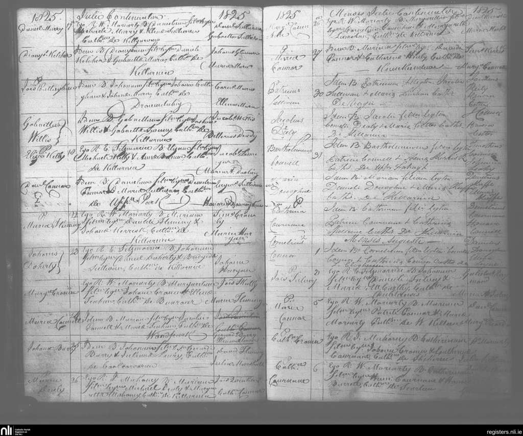 Killarney; County of Kerry; Diocese of Kerry. Baptisms, July 1825 to Aug. 1825