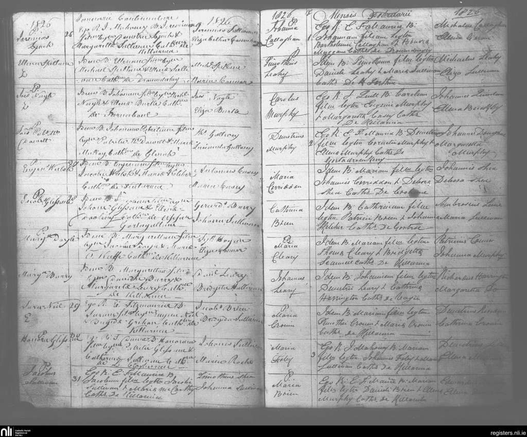 Killarney; County of Kerry; Diocese of Kerry. Baptisms, Jan. 1826 to Feb. 1826