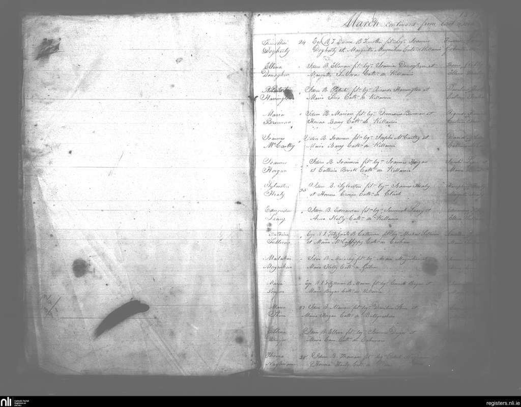 Killarney; County of Kerry; Diocese of Kerry. Baptisms, Mar. 1839