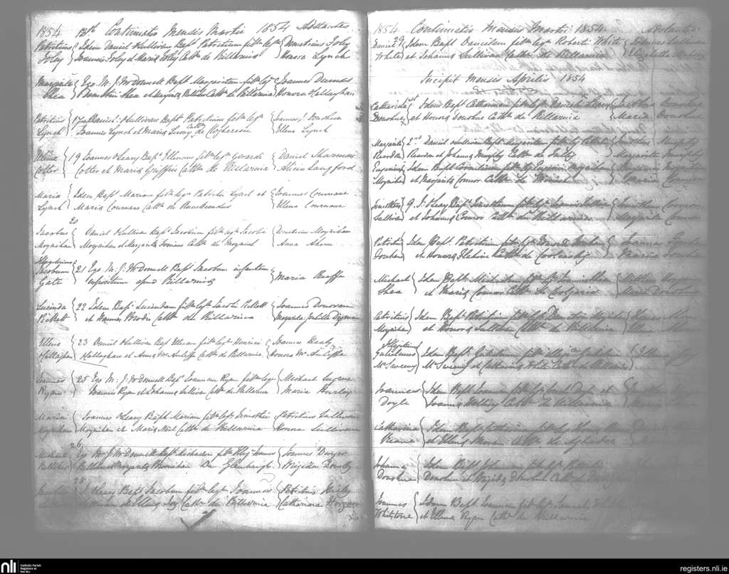Killarney; County of Kerry; Diocese of Kerry. Baptisms, Mar. 1854 to Apr. 1854