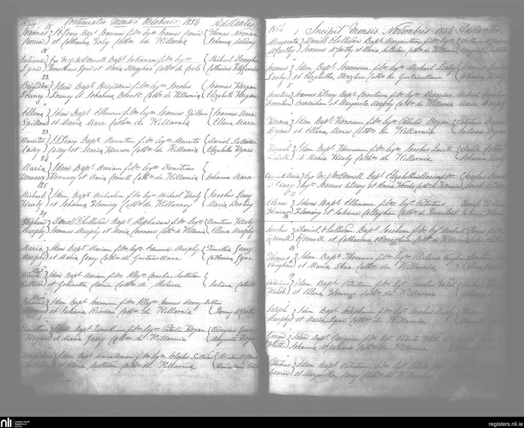 Killarney; County of Kerry; Diocese of Kerry. Baptisms, Oct. 1854 to Nov. 1854