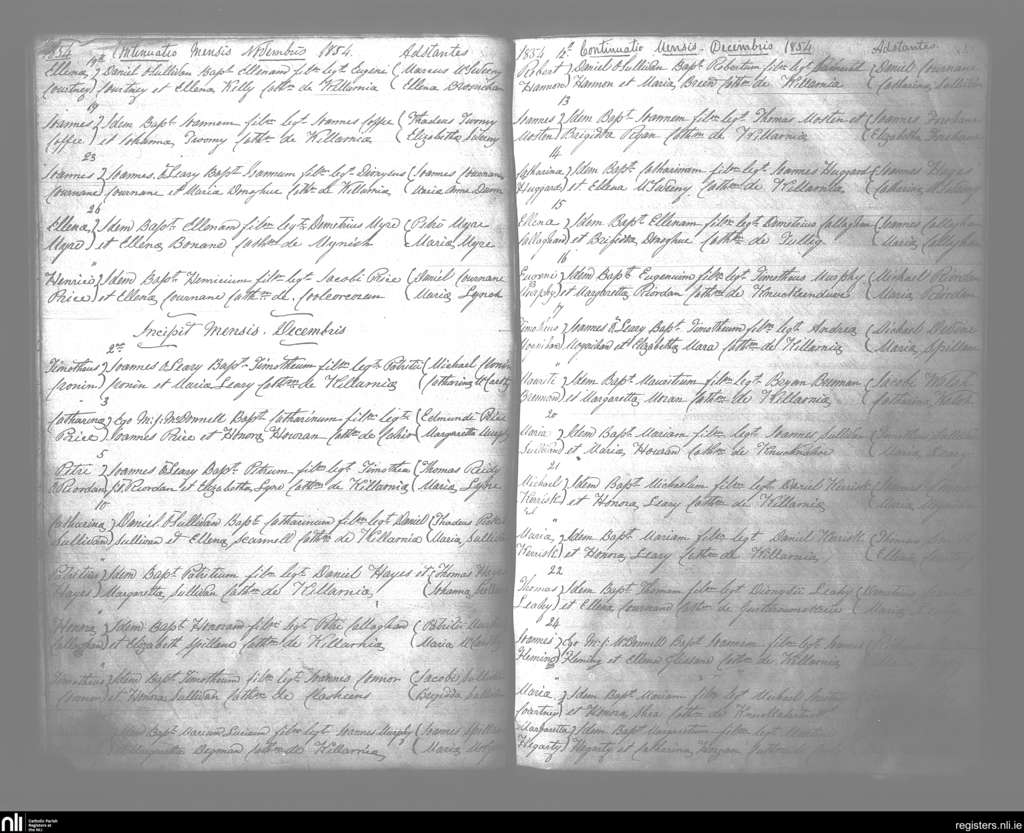 Killarney; County of Kerry; Diocese of Kerry. Baptisms, Nov. 1854 to Dec. 1854
