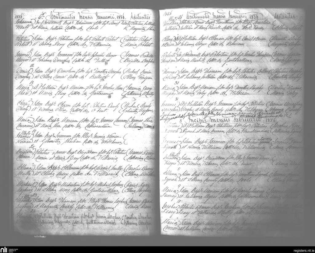 Killarney; County of Kerry; Diocese of Kerry. Baptisms, Jan. 1856 to Feb. 1856