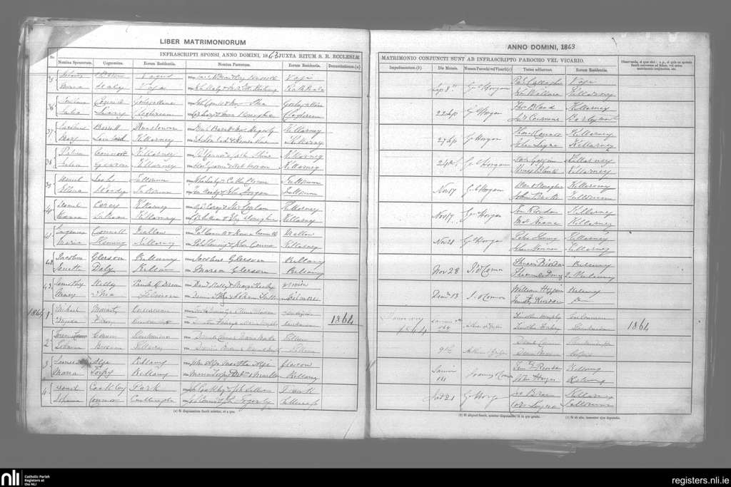 Killarney; County of Kerry; Diocese of Kerry. Marriages, Sep. 1863 to Jan. 1864