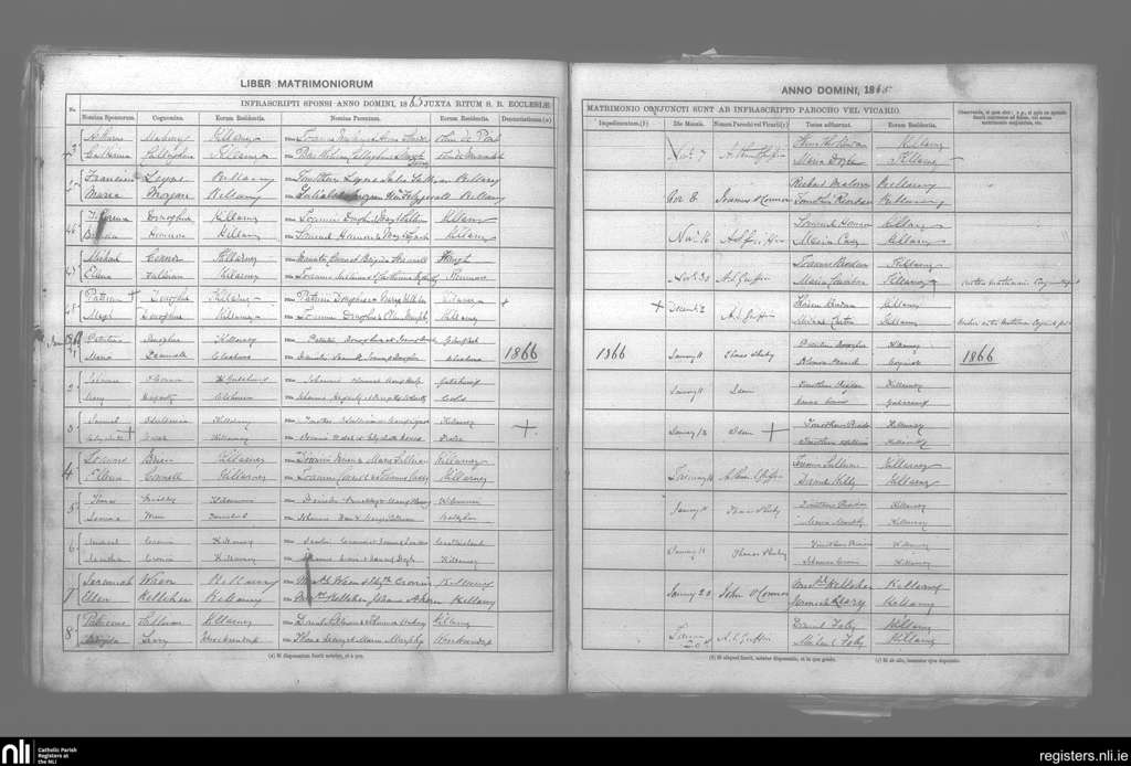 Killarney; County of Kerry; Diocese of Kerry. Marriages, Nov. 1865 to Jan. 1866