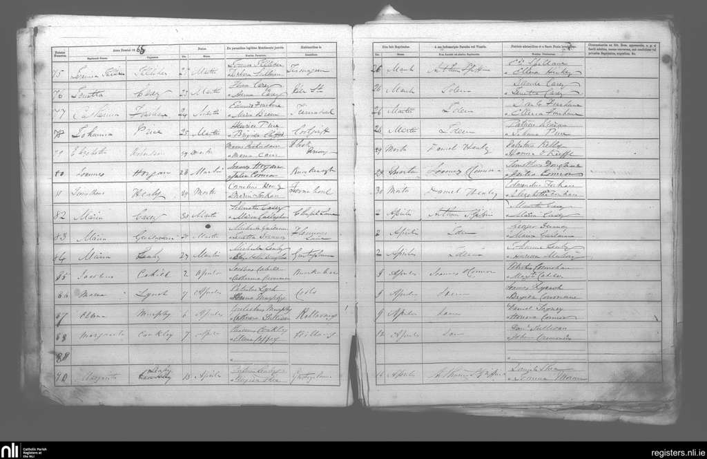Killarney; County of Kerry; Diocese of Kerry. Baptisms, Mar. 1865 to Apr. 1865