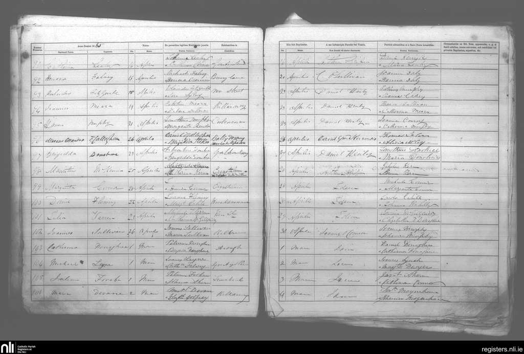 Killarney; County of Kerry; Diocese of Kerry. Baptisms, Apr. 1865 to May 1865