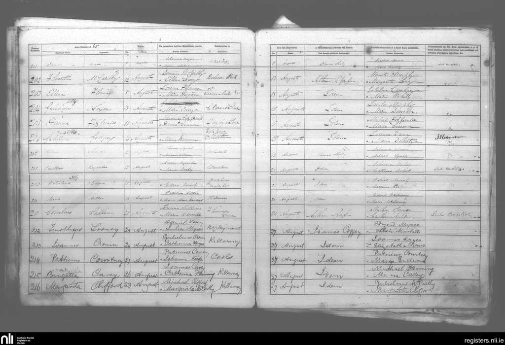 Killarney; County of Kerry; Diocese of Kerry. Baptisms, Aug. 1865