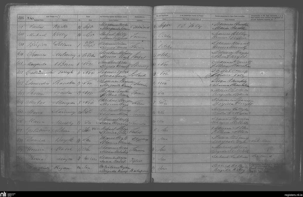Kilnaughten; County of Kerry; Diocese of Kerry. Baptisms, Sep. 1867 to Jan. 1868