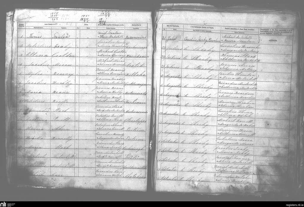 Moyvane; County of Kerry; Diocese of Kerry. Baptisms, July 1855 to Sep. 1855