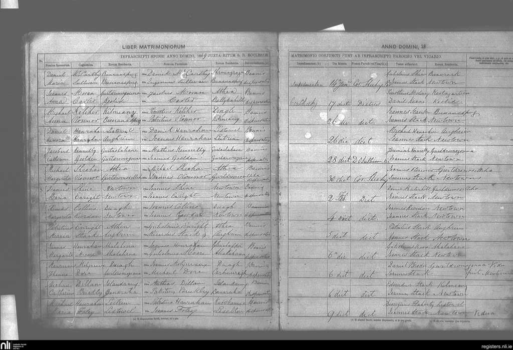 Moyvane; County of Kerry; Diocese of Kerry. Marriages, Jan. 1869 to Feb. 1869