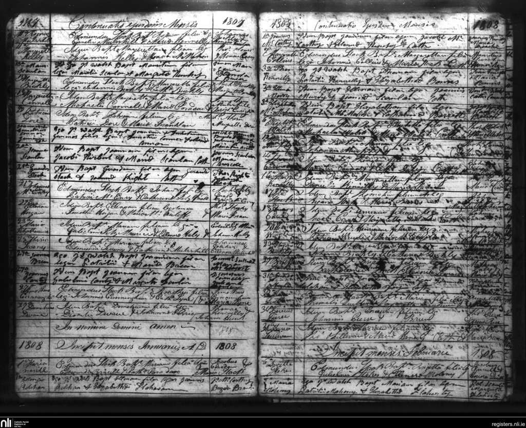 Listowel; County of Kerry; Diocese of Kerry. Baptisms, Dec. 1807 to Feb. 1808