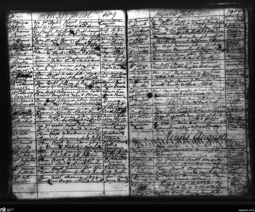 Listowel; County of Kerry; Diocese of Kerry. Baptisms, June 1809 to Aug. 1809