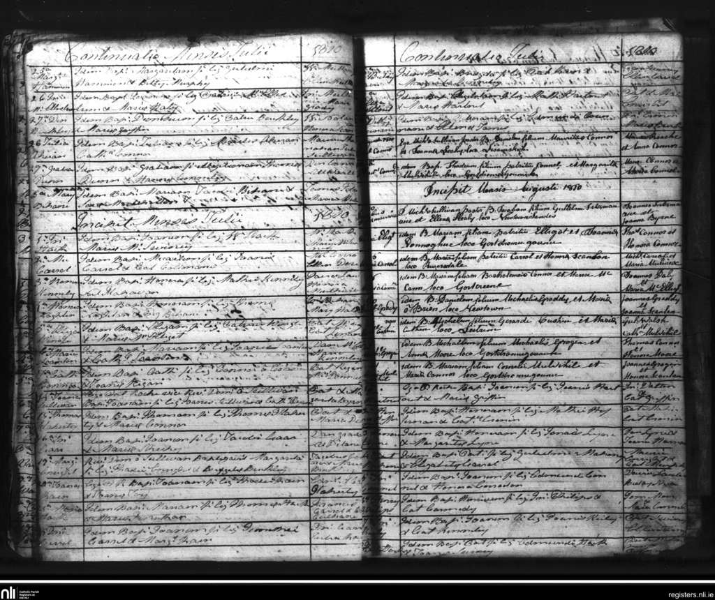 Listowel; County of Kerry; Diocese of Kerry. Baptisms, July 1810 to Aug. 1810