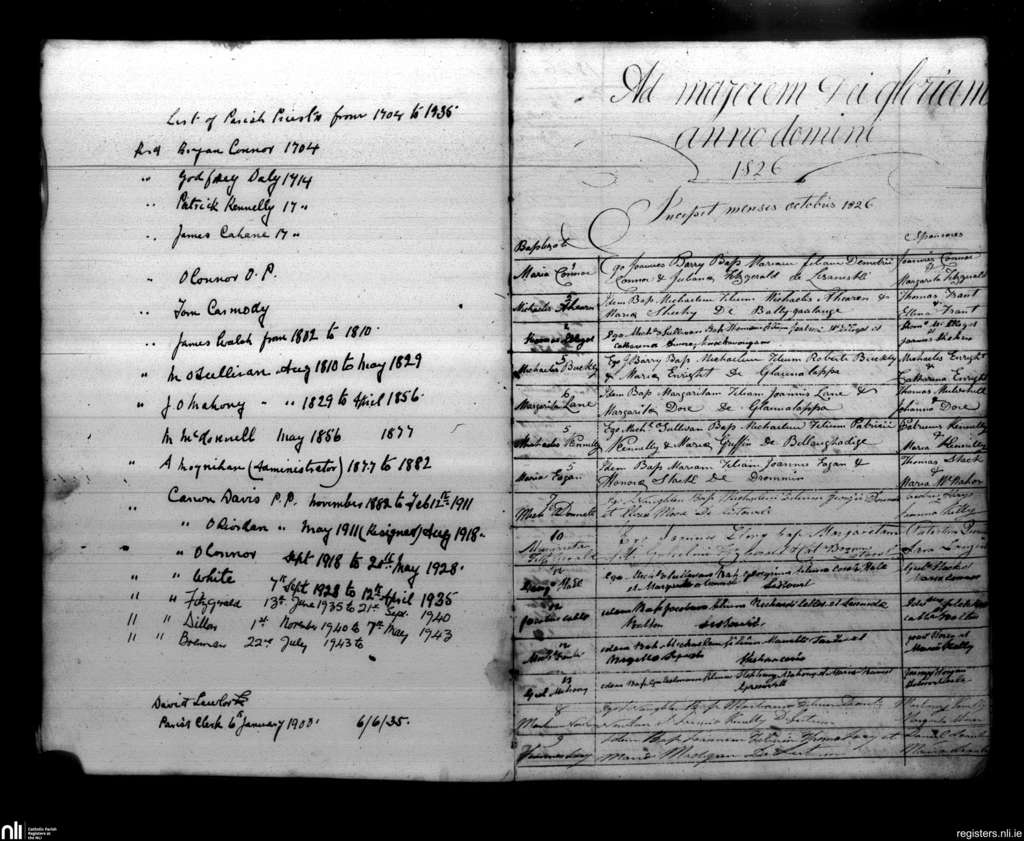 Listowel; County of Kerry; Diocese of Kerry. Baptisms, Oct. 1826