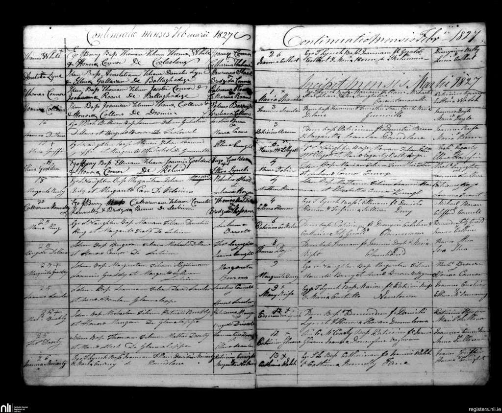 Listowel; County of Kerry; Diocese of Kerry. Baptisms, Feb. 1827 to Mar. 1827