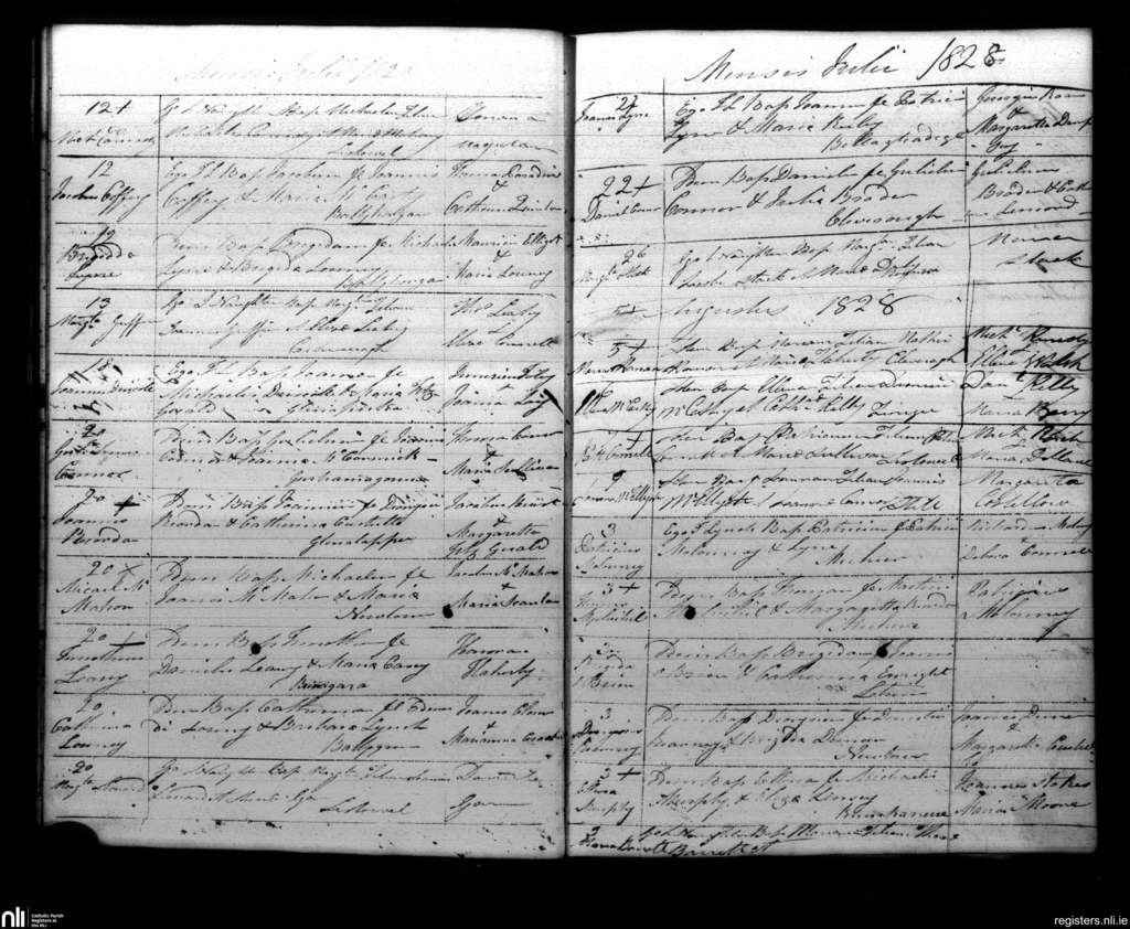 Listowel; County of Kerry; Diocese of Kerry. Baptisms, July 1828 to Aug. 1828