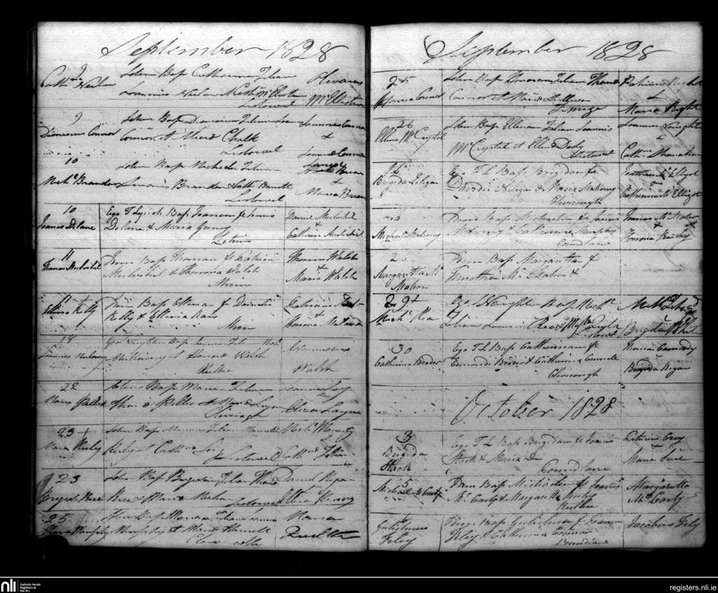 Listowel; County of Kerry; Diocese of Kerry. Baptisms, Sep. 1828 to Oct. 1828