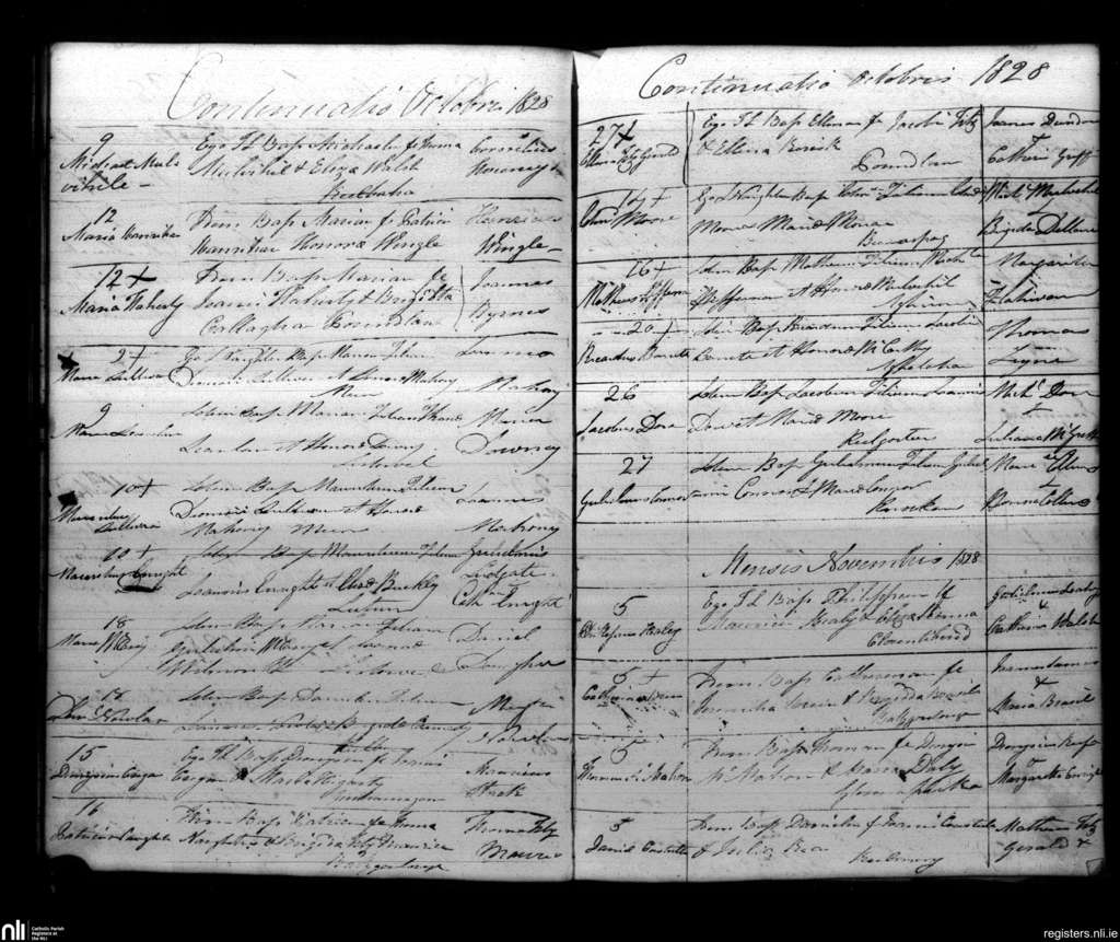Listowel; County of Kerry; Diocese of Kerry. Baptisms, Oct. 1828 to Nov. 1828