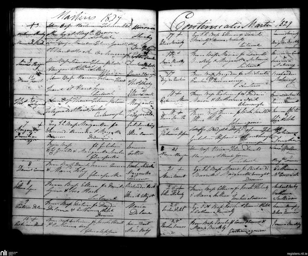 Listowel; County of Kerry; Diocese of Kerry. Baptisms, Mar. 1829