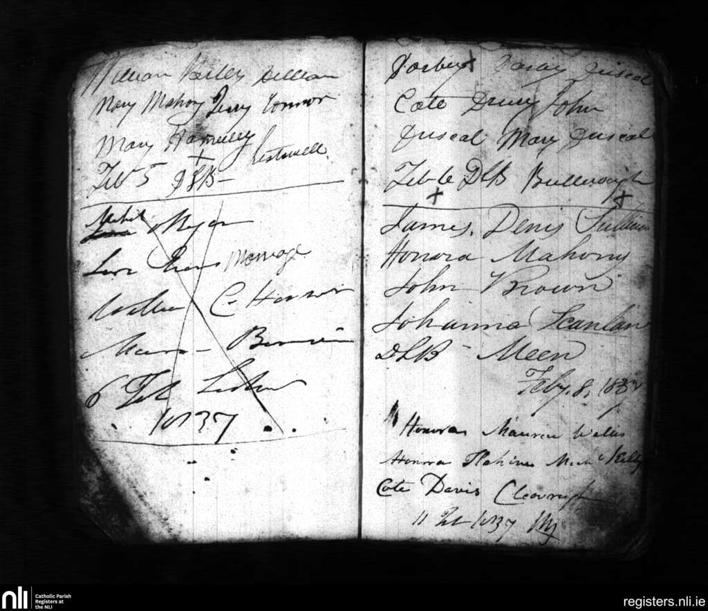 Listowel; County of Kerry; Diocese of Kerry. Baptisms, Marriages, Feb. 1837 to Feb. 1837