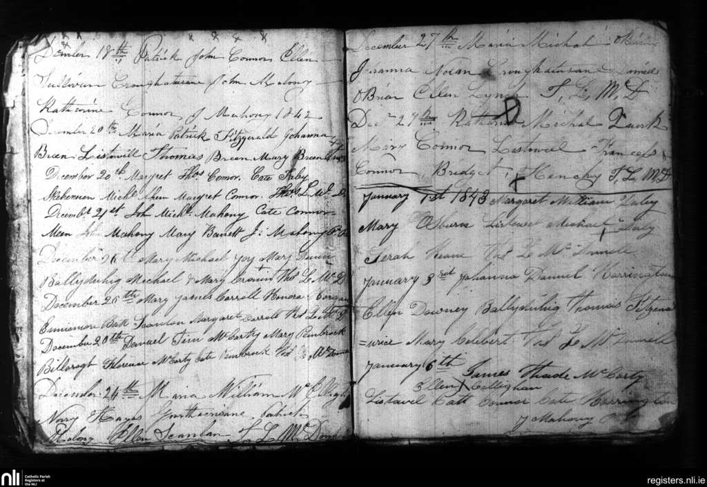 Listowel; County of Kerry; Diocese of Kerry. Baptisms, Dec. 1842 to Jan. 1843