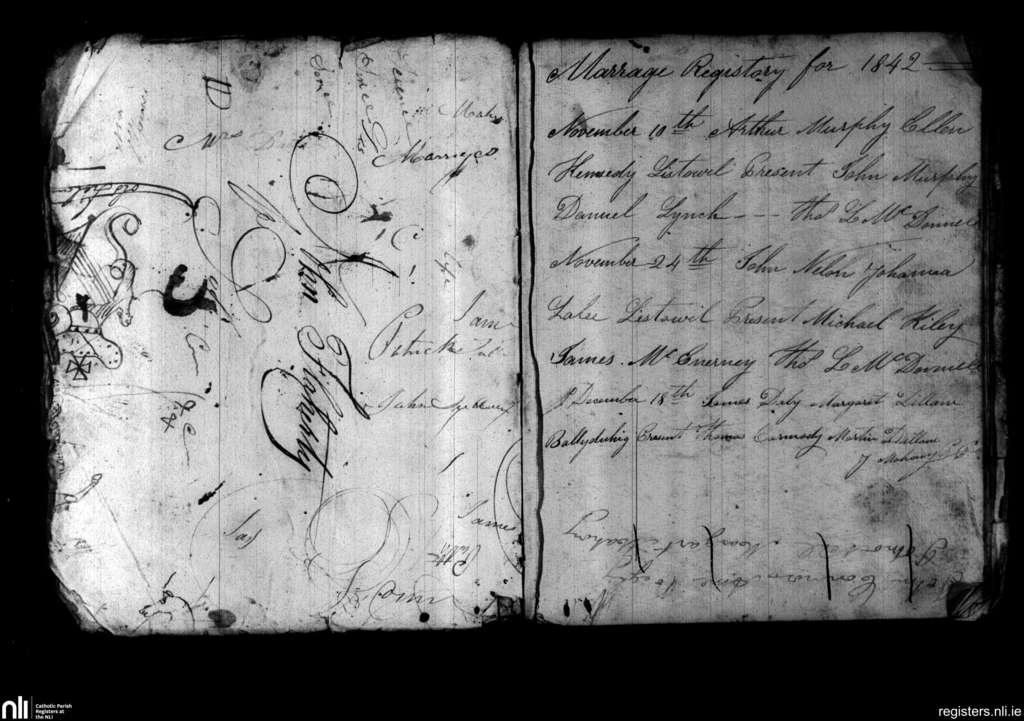 Listowel; County of Kerry; Diocese of Kerry. Marriages, Nov. 1842 to Dec. 1842