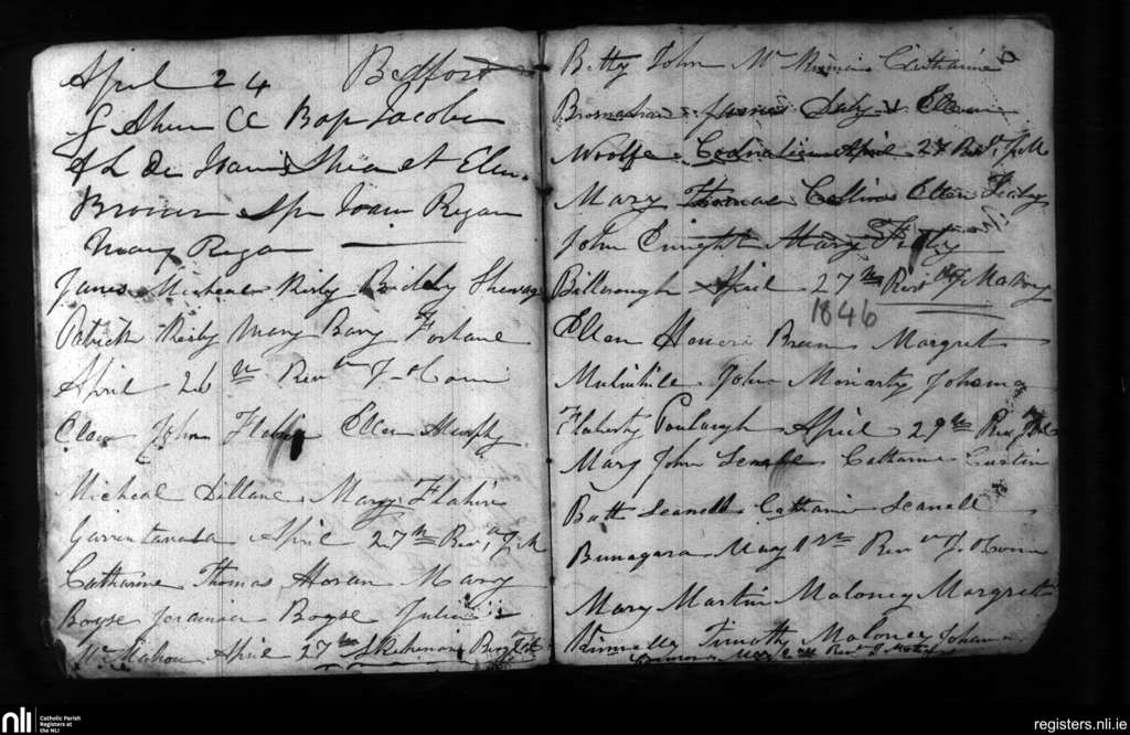 Listowel; County of Kerry; Diocese of Kerry. Baptisms, Apr. 1846