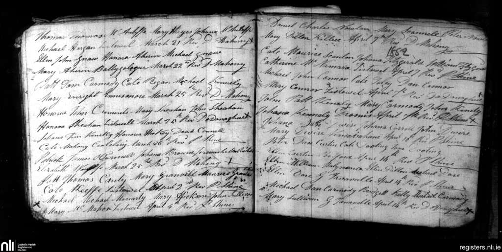 Listowel; County of Kerry; Diocese of Kerry. Baptisms, Mar. 1852 to Apr. 1852