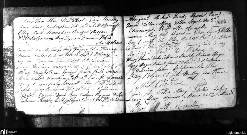 Listowel; County of Kerry; Diocese of Kerry. Baptisms, Feb. 1854 to Mar. 1854