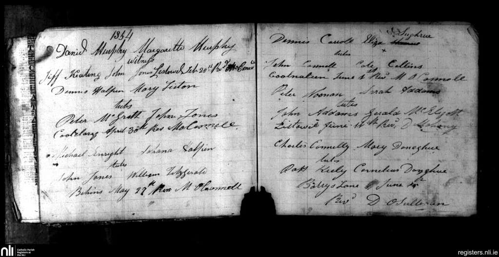 Listowel; County of Kerry; Diocese of Kerry. Marriages, Feb. 1854 to June 1854