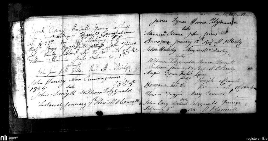 Listowel; County of Kerry; Diocese of Kerry. Marriages, Nov. 1854 to Feb. 1855
