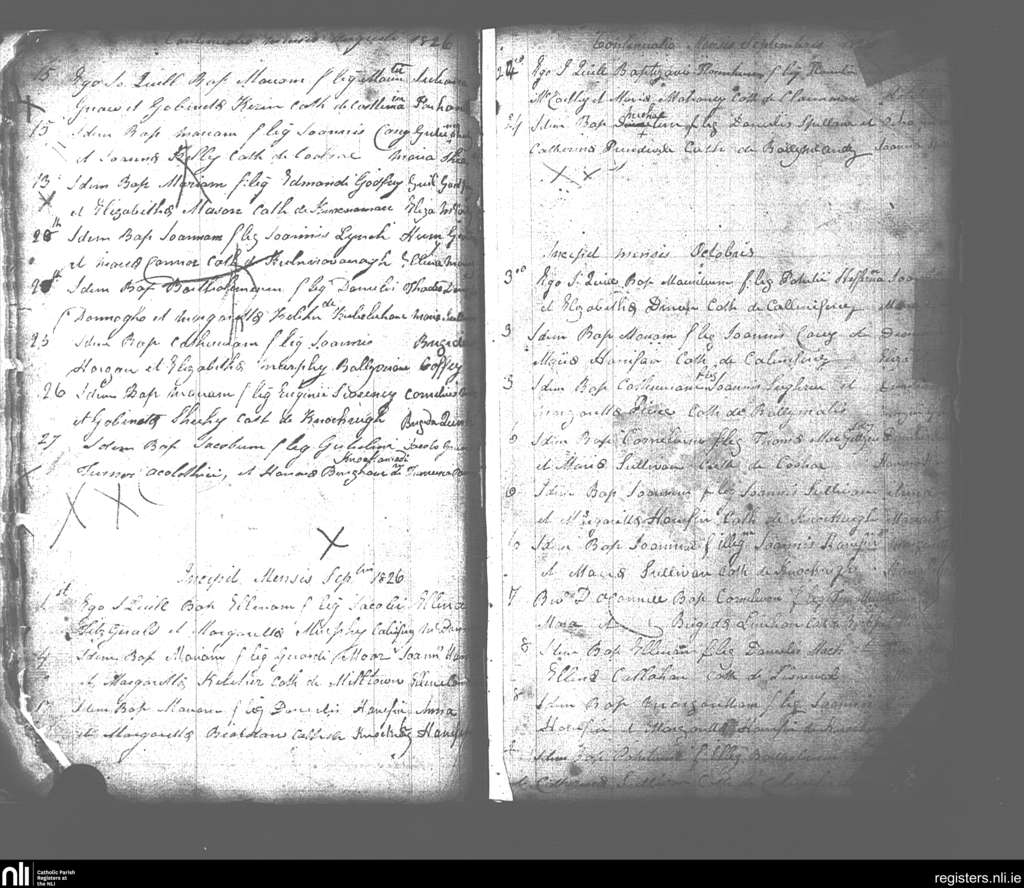 Milltown; County of Kerry; Diocese of Kerry. Baptisms, Aug. 1826 to Oct. 1826