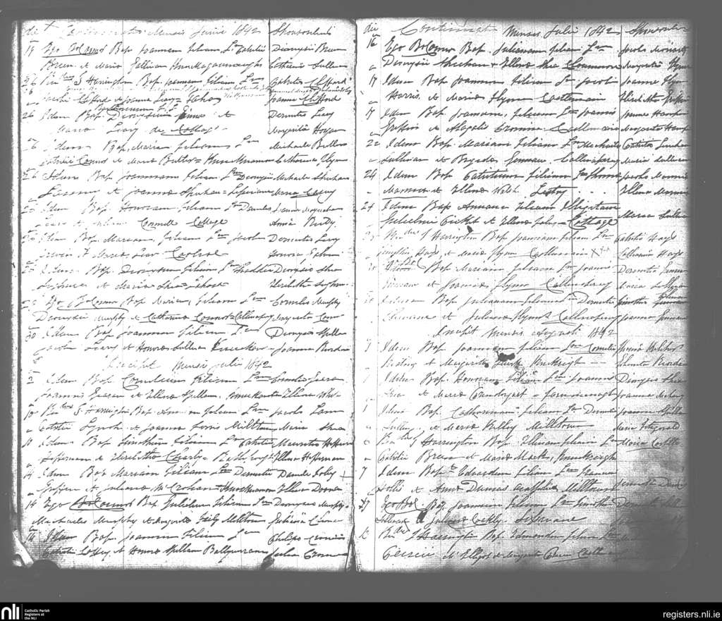Milltown; County of Kerry; Diocese of Kerry. Baptisms, June 1842 to Aug. 1842