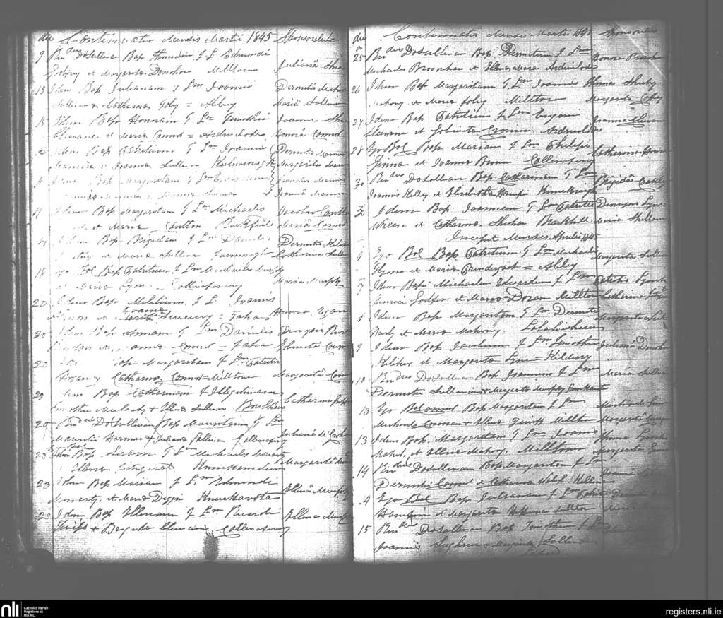 Milltown; County of Kerry; Diocese of Kerry. Baptisms, Mar. 1845 to Apr. 1845