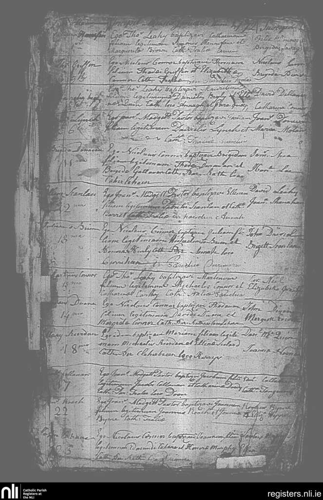 Tralee; County of Kerry; Diocese of Kerry. Baptisms, Jan. 1772