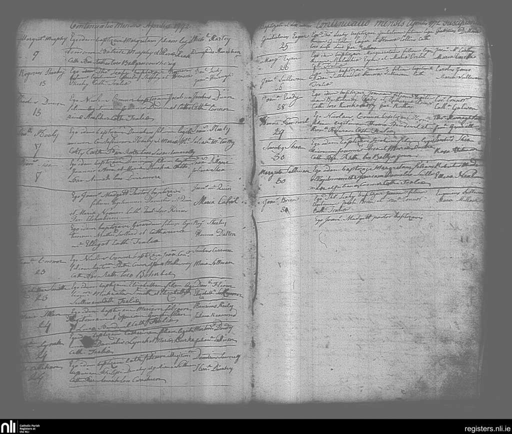 Tralee; County of Kerry; Diocese of Kerry. Baptisms, Apr. 1772