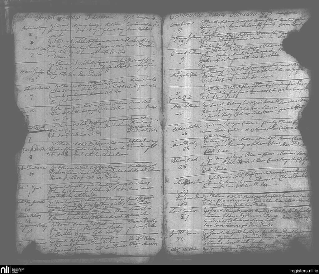 Tralee; County of Kerry; Diocese of Kerry. Baptisms, Feb. 1773