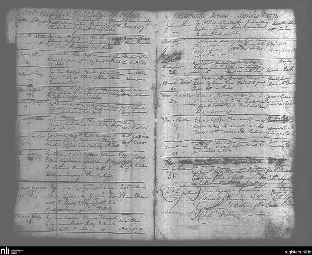 Tralee; County of Kerry; Diocese of Kerry. Baptisms, Apr. 1774