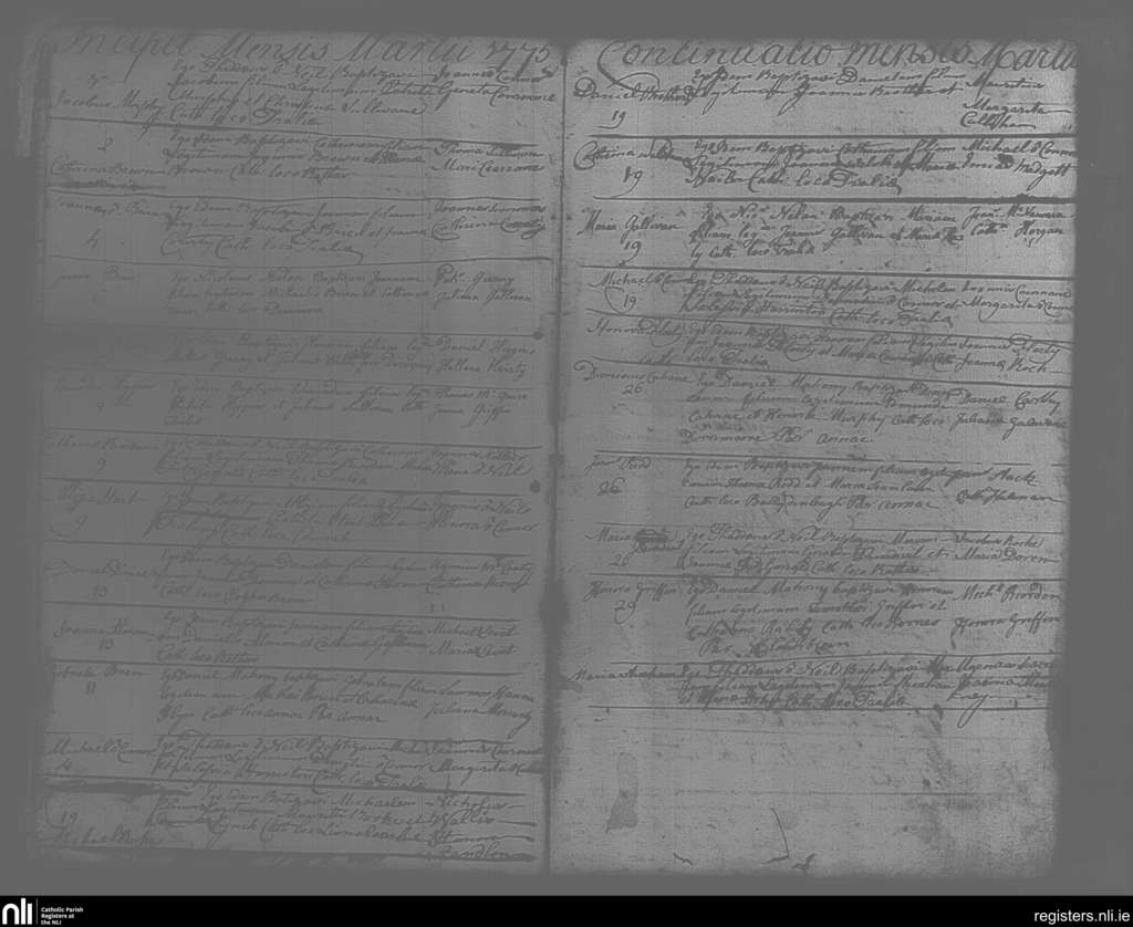 Tralee; County of Kerry; Diocese of Kerry. Baptisms, Mar. 1775