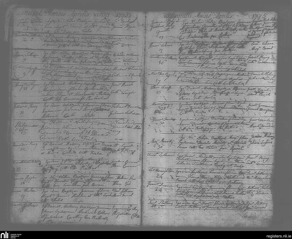 Tralee; County of Kerry; Diocese of Kerry. Baptisms, Apr. 1775