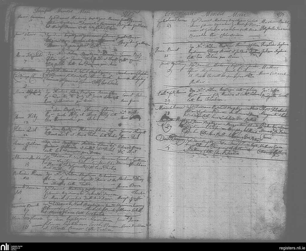 Tralee; County of Kerry; Diocese of Kerry. Baptisms, May 1775
