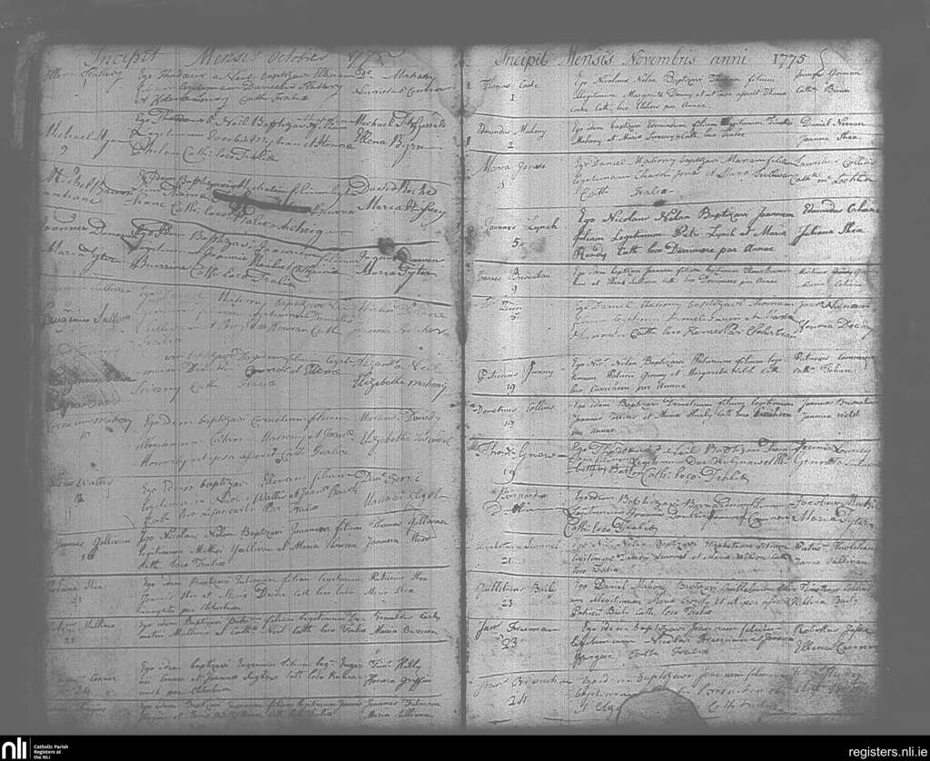 Tralee; County of Kerry; Diocese of Kerry. Baptisms, Oct. 1775 to Nov. 1775