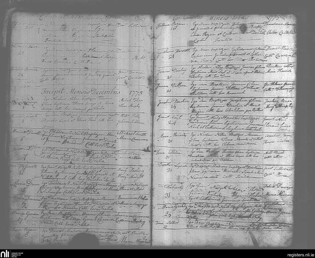 Tralee; County of Kerry; Diocese of Kerry. Baptisms, Nov. 1775 to Dec. 1775