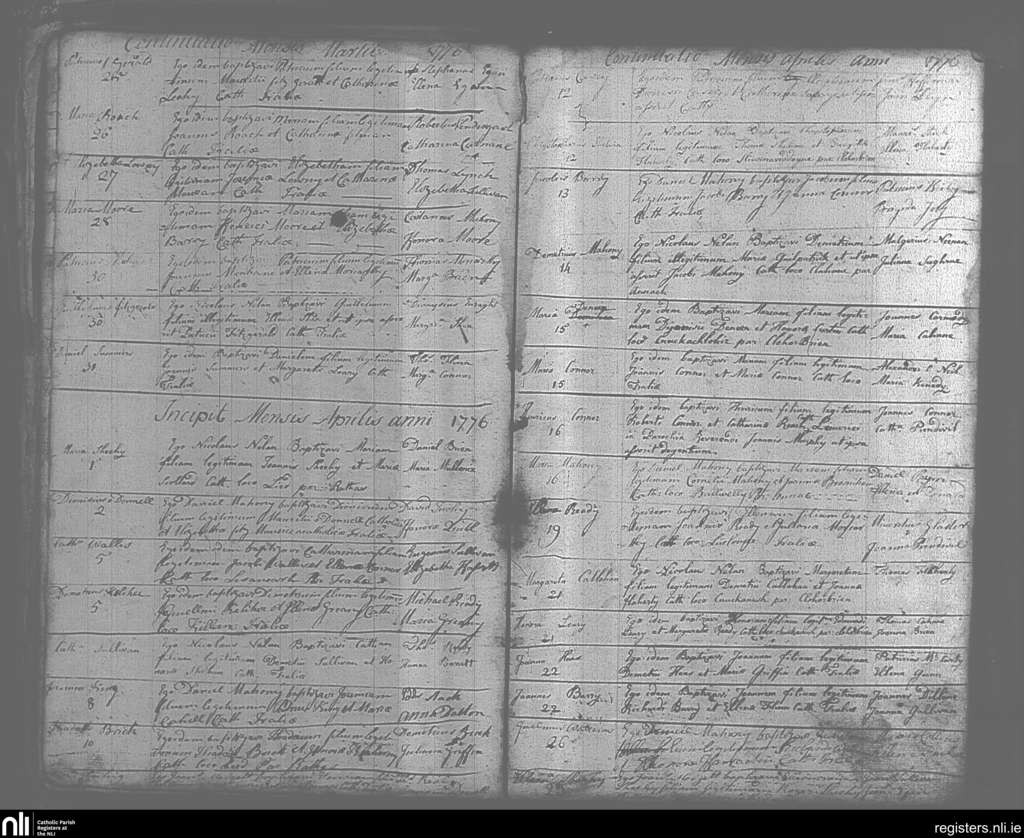 Tralee; County of Kerry; Diocese of Kerry. Baptisms, Mar. 1776 to Apr. 1776