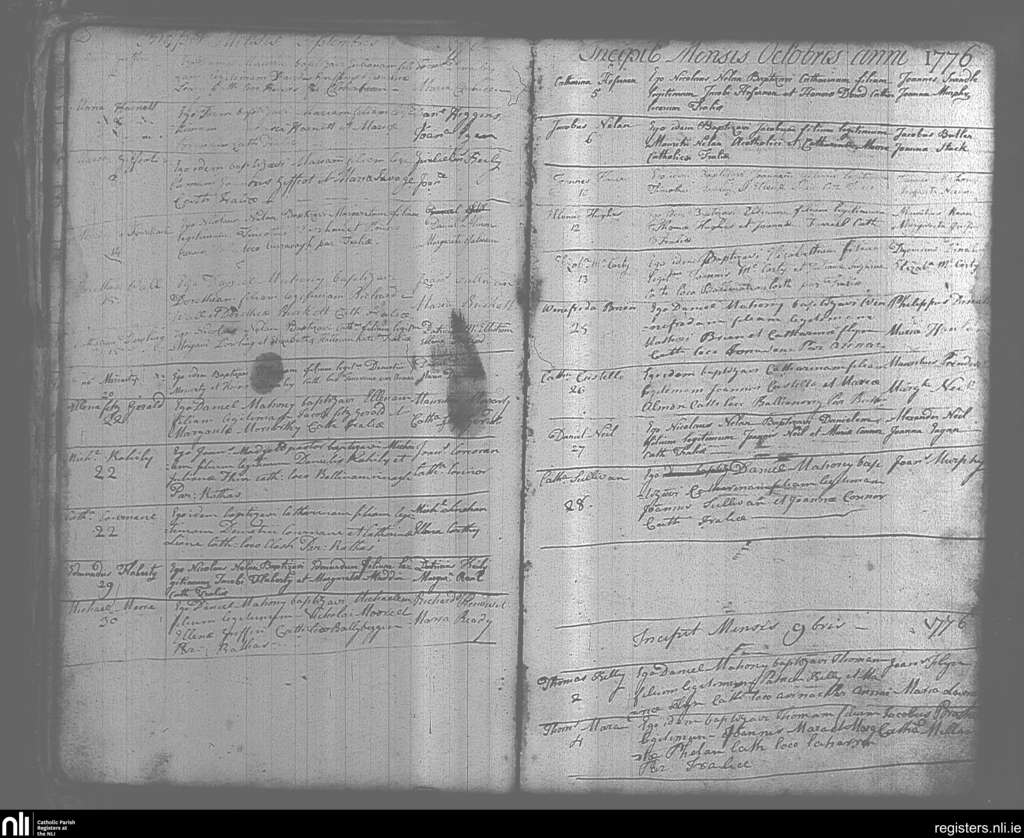 Tralee; County of Kerry; Diocese of Kerry. Baptisms, Sep. 1776 to Nov. 1776