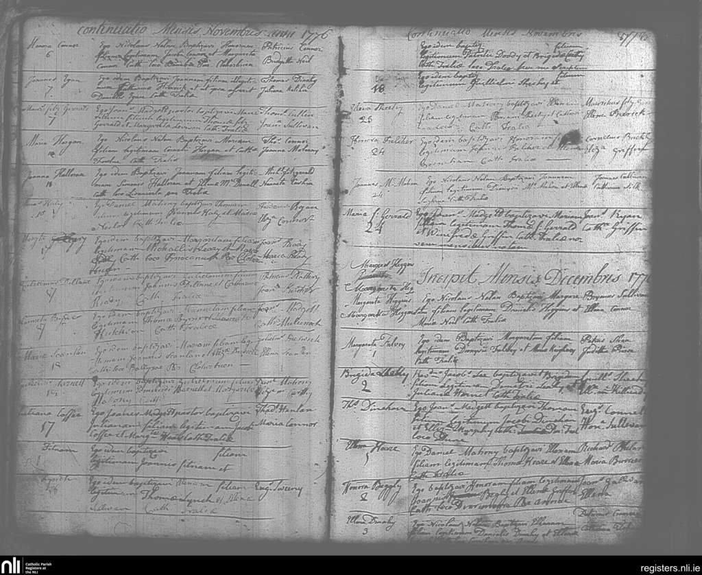 Tralee; County of Kerry; Diocese of Kerry. Baptisms, Nov. 1776 to Dec. 1776