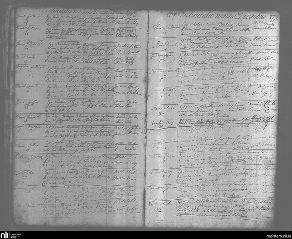 Tralee; County of Kerry; Diocese of Kerry. Baptisms, Dec. 1776 to Jan. 1777